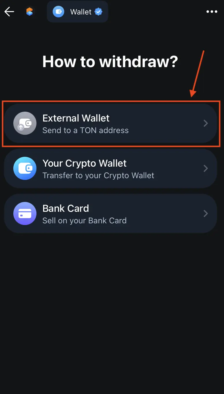 Select External wallet