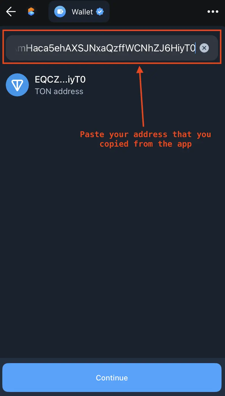 Paste your CCoT wallet address that you copied from the app earlier